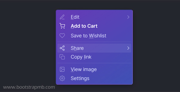 时尚的JavaScript网页右键菜单,覆盖浏览器右键上下文菜单。 有子菜单、图标、浏览器边缘检测和极简JS。