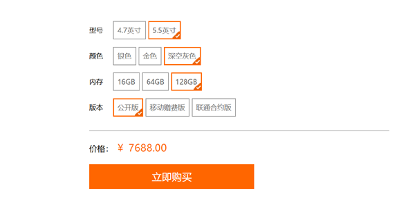 JS代码实现的多条件选中效果,类似淘宝商品详情页面多条件选择购买效果。