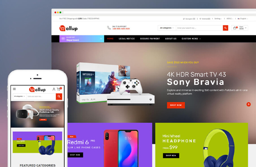 Allup是时尚的电子商务HTML5模板,是现代和响应设计商城网页前端模板,精致的bootstrap电商风格。适合不同类别在线商店网站,可以在线出售电子产品,玩具&爱好体育和户外,智能手机和平板电脑,台灯,相机和照片等等。