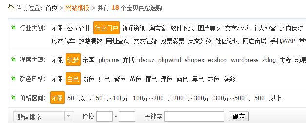 如下图商品列表页,各筛选项任意组合,产生无尽长尾词网页标题: